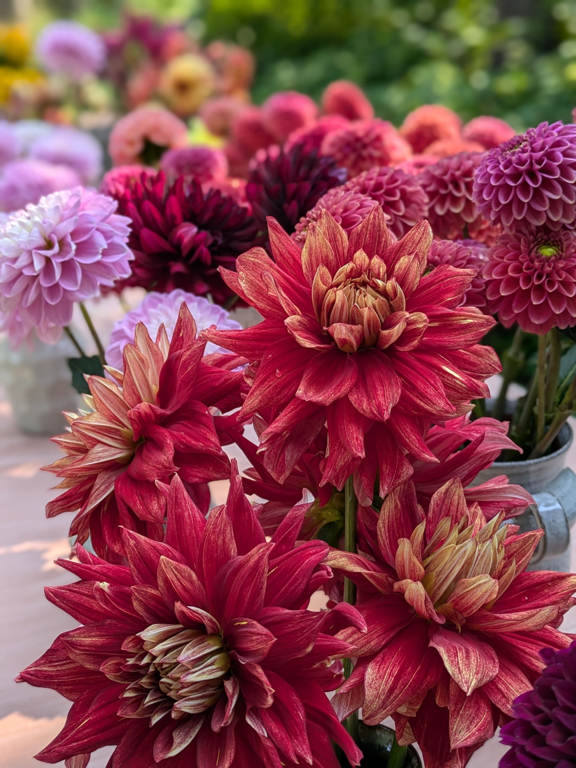 All tubers are from our farm in Afton, MN. We are a pollinator-friendly farm meaning we don’t use herbicides or pesticides to maintain our fields and gardens.These are some of my favorite varieties of dahlias! All are great for gardeners new to dahlias, they make sturdy stems and produce about a gazillion blooms if you keep removing spent flowers. Height ranges from 36-48”, all of them are great in the garden and make fantastic cut flowers. Some key growing points of dahlias: they need full sun and consistent watering to flower well (they are similar to growing tomatoes in many respects) they also get very large and will need a peony cage or a corral of stakes and twine by mid-summer. It’s best if you can put them in a location where they are not sitting in heavy soil, the tubers can rot if they sit in wet heavy soil for long periods of time.