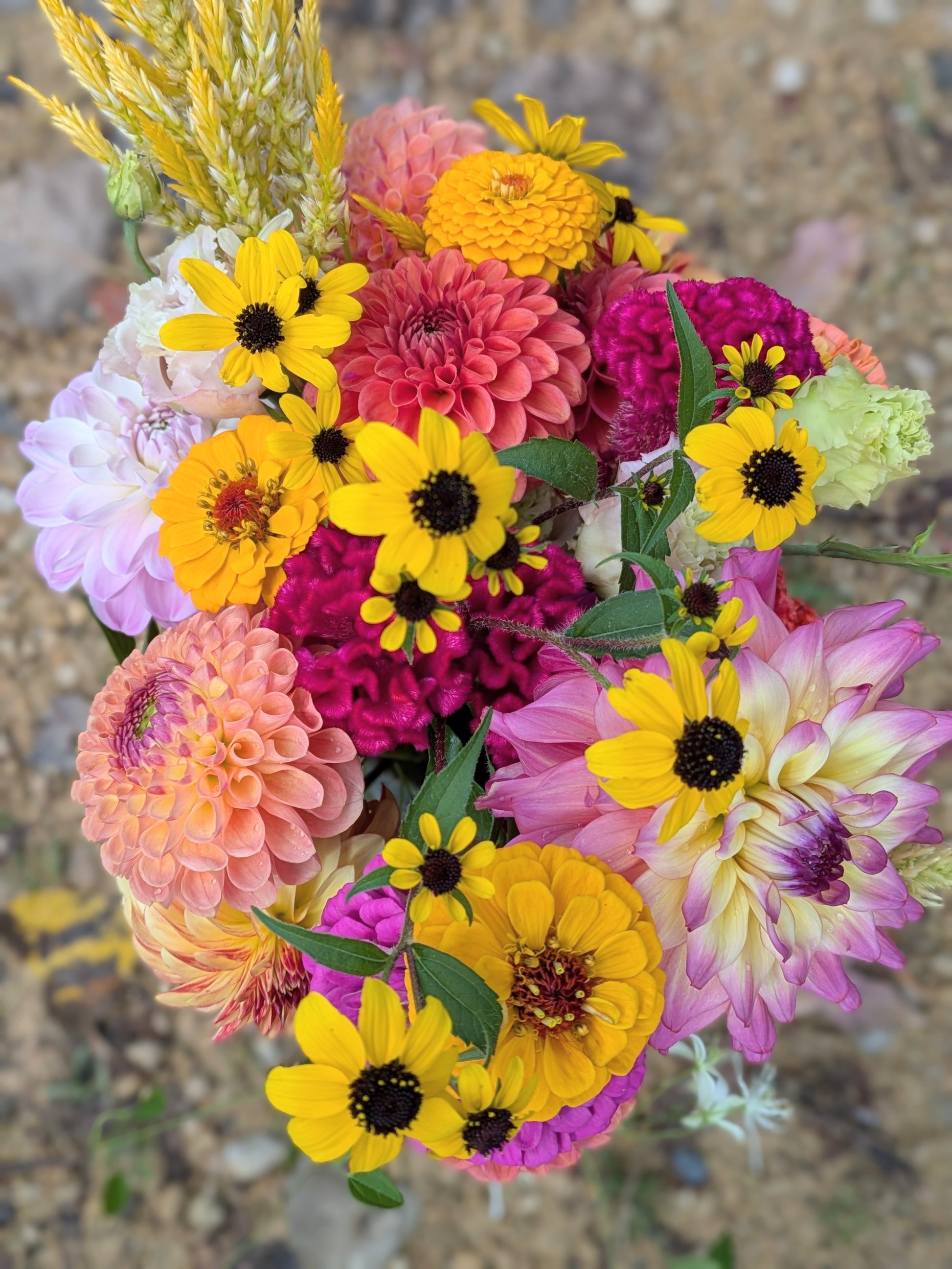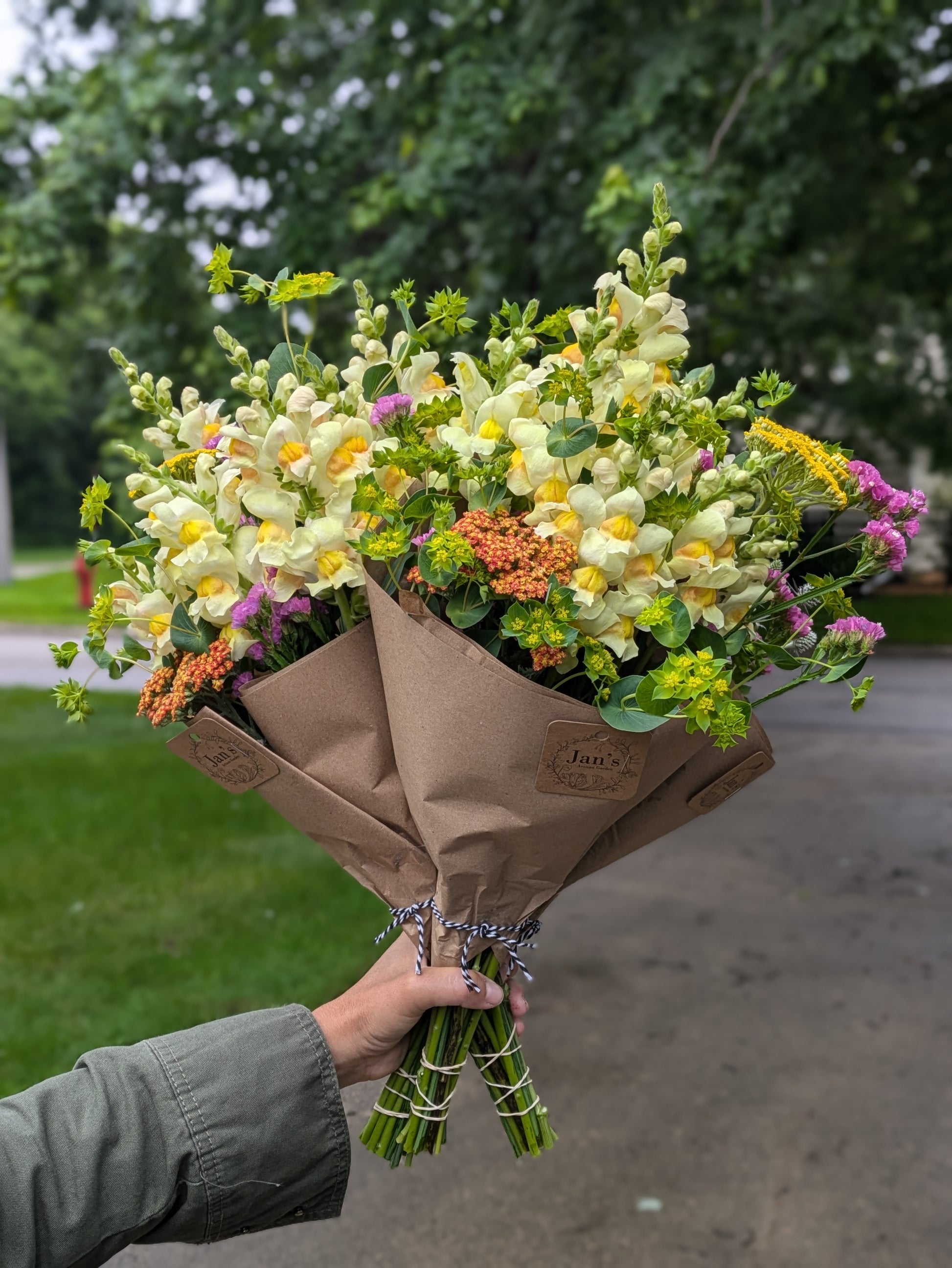 Direct from our pollinator-friendly farm to you. High-quality blooms freshly cut & beautifully arranged. The flowers are unique every week, but are consistently lovely & long-lasting.